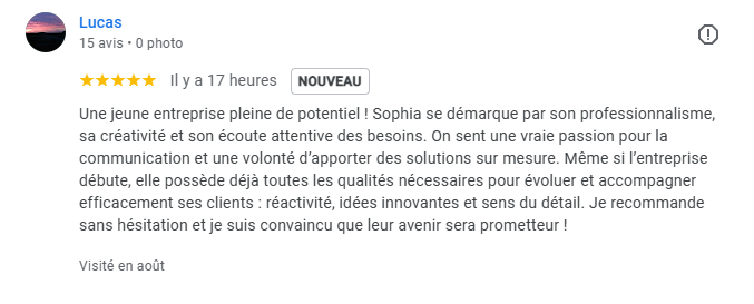 Que vous ayez besoin de visibilité en ligne, de supports imprimés percutants ou d’une formation personnalisée et tout en douceur, SophiAgence est là pour vous simplifier la communication.